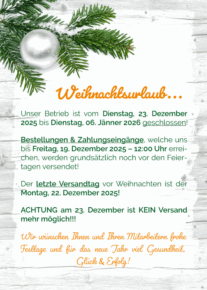 Bei Bestellung bis 11:00 Uhr Werktags erfolgt der Versand in der Regel noch am selben Werktag, spätestens jedoch am nächsten Werktag!